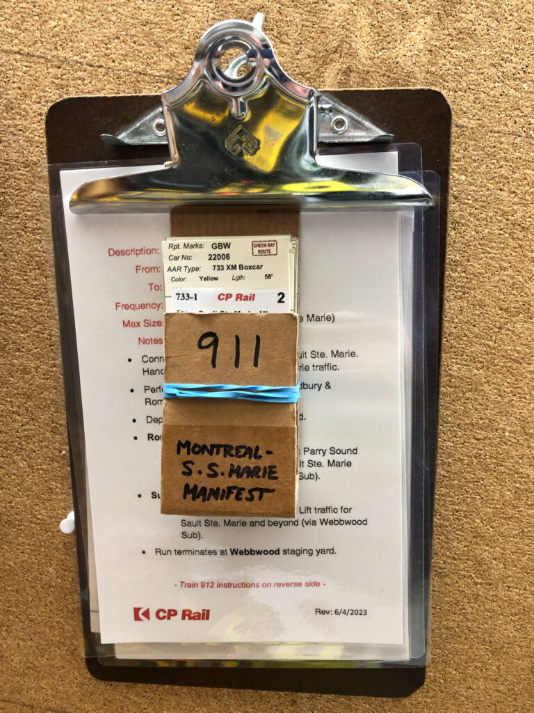 Each conductor receives a packet of information for their train, indicating what the train will do on the layout portion of its trip. The car cards indicate where they should be set out – or kept on the train – so the conductor is kept busy with the paperwork. It’s too bad we don’t have a 1:1 scale caboose to sit in…